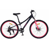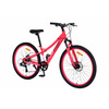 Велосипед, предназначенный для девушек в возрасте от восьми до тринадцати лет, с оборудованием начального класса Shimano, 7 скоростей. Технические особенности: легкая алюминиевая рама (сплав 6061, частично скрытая проводка, кареточный стакан BSA, крепление калипера IS, съемный петух, бонки для багажника и флягодержателя), амортизационная вилка (пружинная, ход 50 мм, крепление калипера IS), двойные алюминиевые обода (под AV ниппель), дисковые механические тормоза (роторы 160/160 мм), защита цепи, подножка, катафоты. Подходит для прогулочного катания в городских условиях и по несложным маршрутам в лесу. Диаметр колес - 26 дюймов. Вес - 14 кг.