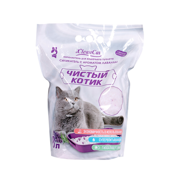 Наполнитель Чистый котик Силикагель с ароматом лаванда 8 л