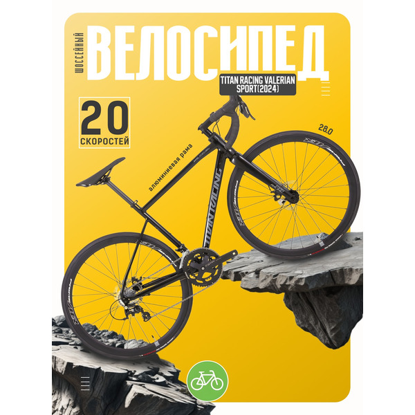 Шоссейный велосипед Titan Racing Valerian Sport, год 2024, цвет Черный, ростовка 18