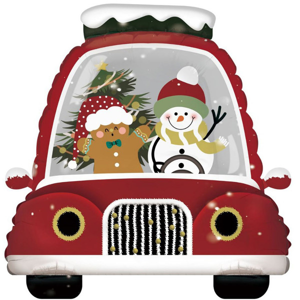 Шар (22"/56 см) Фигура, Новогодний автомобильчик, 1 шт. в уп.