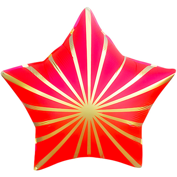 Шар (18"/46 см) Звезда, Золотые грани, Красный, Сатин, 1 шт.