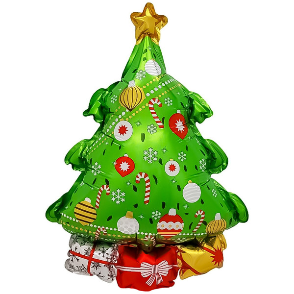 Шар с клапаном (17"/43 см) Мини-фигура, Новогодняя елочка, 5 шт. в уп.