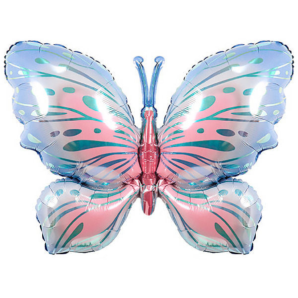 Шар (40"/102 см) Фигура, Воздушная бабочка, Голубой/Розовый, 1 шт. в уп.