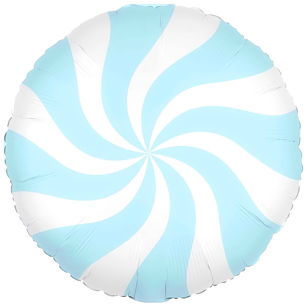 Шар (18"/46 см) Круг, Леденец, Голубой/Белый, 1 шт.