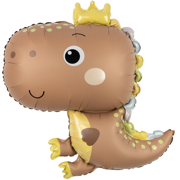 Шар (31"/79 см) Фигура, Динозаврик в короне, Бежевый, Сатин, 1 шт. в уп.