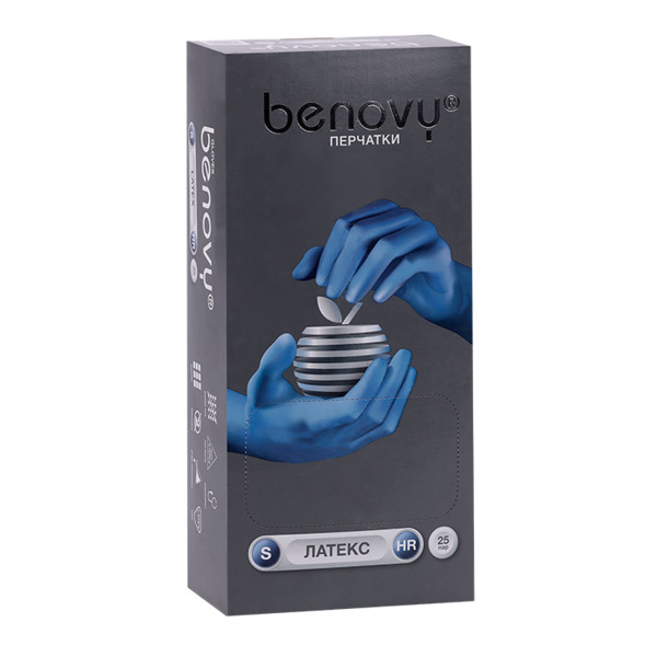 Перчатки BENOVY Top Glove повыш прочн смотр/латекс/нестер/неопудр р S, 25 шт, пара