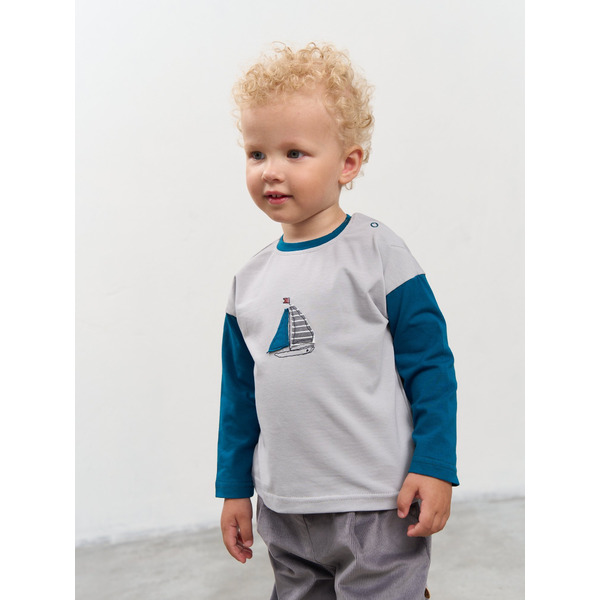Лонгслив из эластичного хлопкового трикотажа в стиле колор-блок – удобная модель для малышей на каждый день. Продуманный силуэт не сковывает движения, что удобно для игр и прогулок. Плечевая застежка на кнопки облегчает переодевание, а мягкая бейка по горловине не натирает. Вышивка с аппликацией на полочке добавляет интересный акцент и вдохновляет малышей на новые открытия. Лонгслив легко сочетать с джинсами, лосинами или поддеть под комбинезон – подходит для детского сада, прогулок и дома.