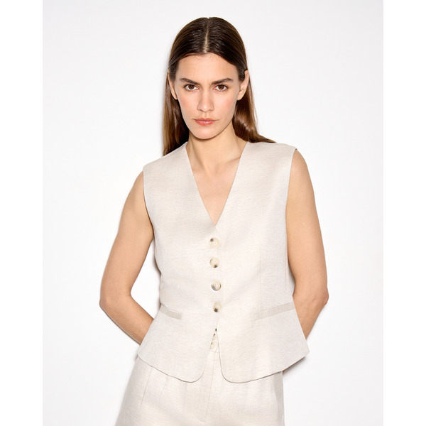 Классический жилет из вискозы и льна, бежевый