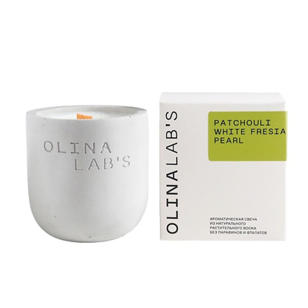OLINALAB"S Свеча ароматическая в бетонном стакане Patchouli white fresia pear
