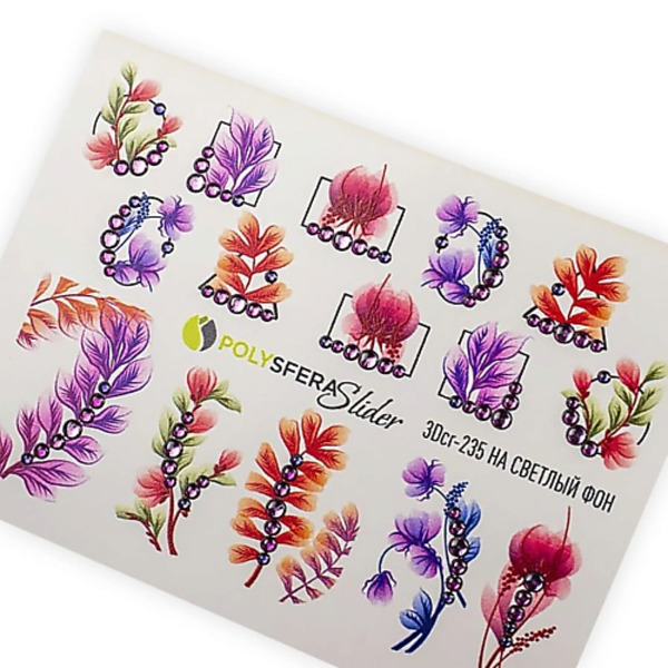 ПОЛИСФЕРА Слайдер дизайн для ногтей со стразами Яркая акварель 235