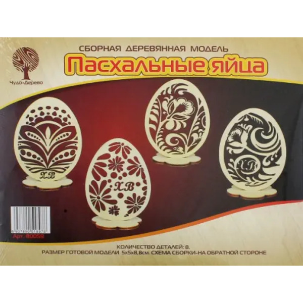 Сборная деревянная модель. Пасхальные яйца, 4 штуки