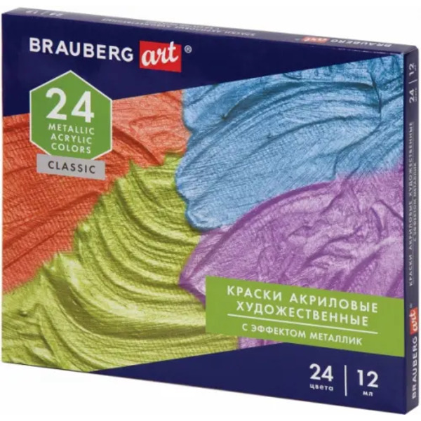 Краски акриловые художественные "Brauberg Art. Classic", металлик, в тубах, 24 цвета по 12 мл