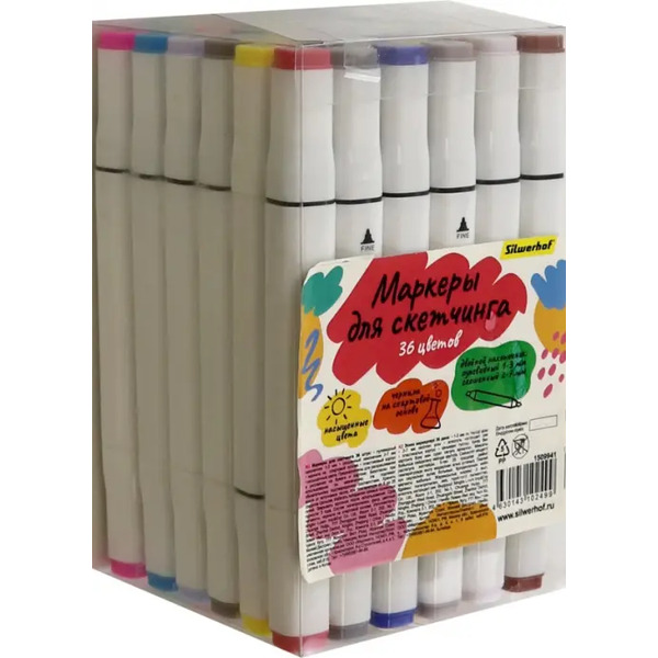 Маркеры для скетчинга, двойной пишущий наконечник, 36 штук