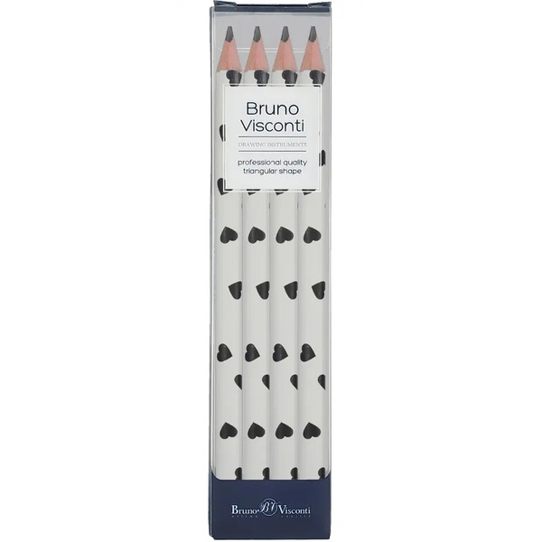 Набор из 4 чернографитовых карандашей. Сердечки, 4В