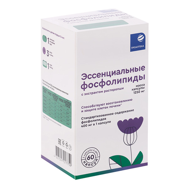 Эссенциальные фосфолипиды с экстрактом расторопши Проаптека, 1 250 мг, 60 шт, капсулы