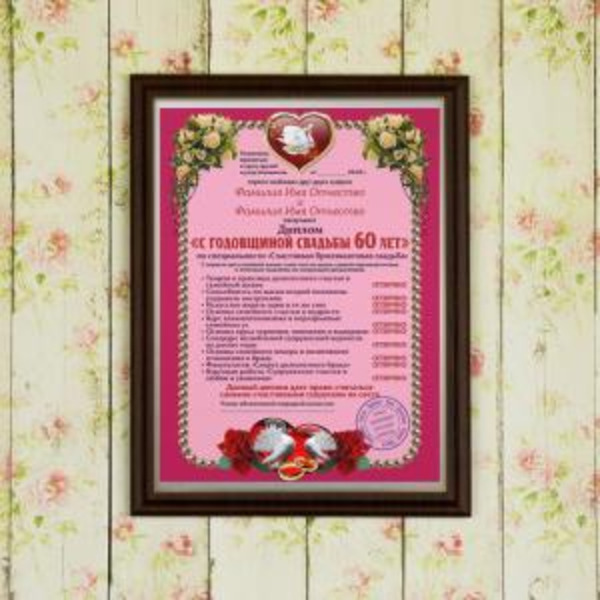 Подарочный диплом (плакетка) *С годовщиной свадьбы 60 лет*