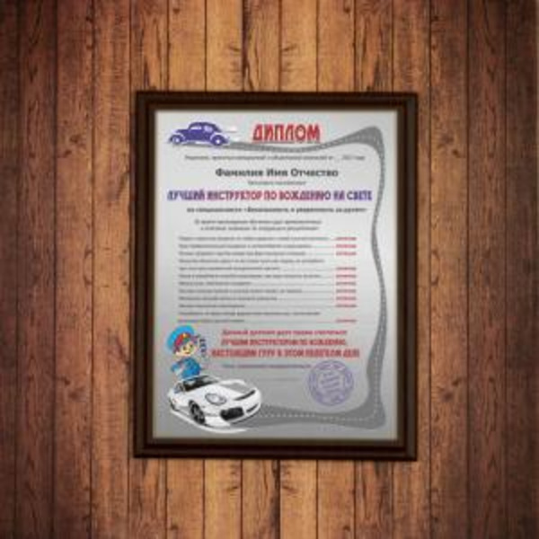 Диплом *Лучший инструктор по вождению на свете*