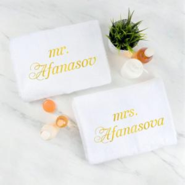 Комплект полотенец с вышивкой «Мистер и Миссис» (белые)