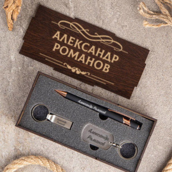 Набор с гравировкой (ручка, флешка, брелок) именной