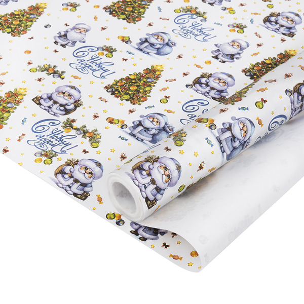 Упаковочная бумага, Крафт 70гр (0,68*10 м) Дед Морозы, Белый, 1 шт.