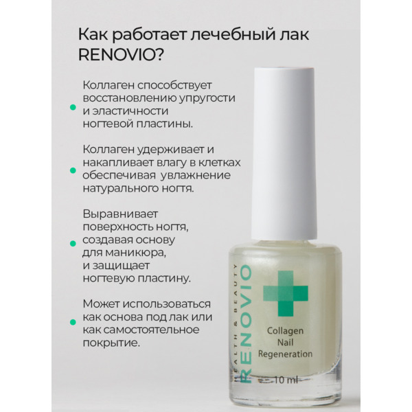 Лаковое покрытие для ногтей RENOVIO с коллагеном, цвет молочный, 10 мл