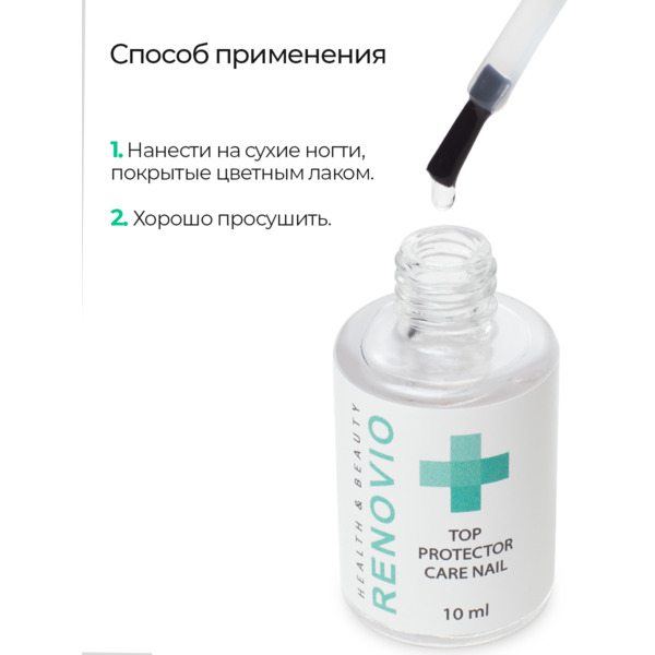 Лаковое покрытие для ногтей RENOVIO способствует быстрому высыханию лака, придает глянец, цвет прозрачный, 10 мл